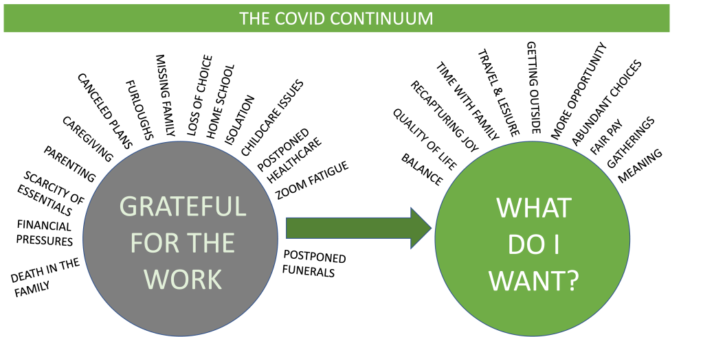 For those who were able to work virtually, many were doing the jobs of 1-3 roles, with downsizing, furloughs, and budget cuts over the past 18 months. This, while juggling home-schooling, childcare, family care, isolation, financial stress and more. It’s been a grueling time for those lucky enough to have the work.